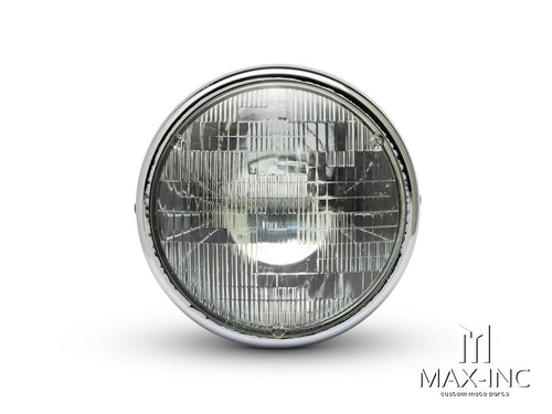 7" Gloss Black + Chrome Shorty Metal Headlight - 12v / 55w Sealed Beam